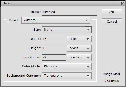 - Atur Lebar dan Tinggi menjadi sesuatu yang kecil (Dalam kasus saya, saya akan mulai dengan membuat ubin dasar, sehingga Lebar dan Tinggi diatur ke 16)