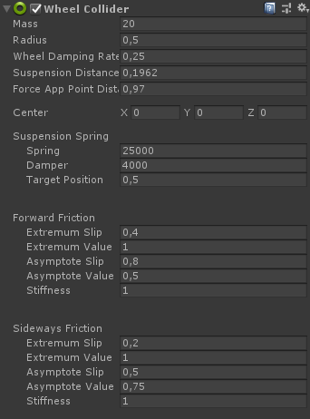 - Tetapkan objek WheelTransform ke array Wheels