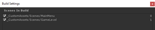 - Tambahkan MainMenu dan GameLevel ke Pengaturan Build.