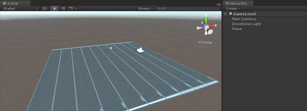 - Buat Scene baru dan beri nama "GameLevel" (Atau jika Anda ingin tetap menggunakan nama lain, pastikan untuk mengganti nama di baris ini PhotonNetwork.LoadLevel("GameLevel"); di GameLobby.cs).