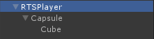 - Pindahkan model pemutar ke dalam GameObject 'RTSPlayer' (CATATAN: Sebelum melakukan parenting, pastikan 'RTSPlayer' diletakkan di bagian bawah model pemutar)