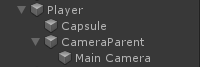 - Buat GameObject baru dan beri nama "CameraParent" dan pindahkan ke dalam Object "Player", ubah posisinya menjadi (0, 1.64, 0)