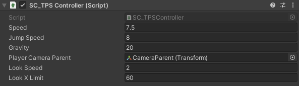 - Buat Script baru, beri nama SC_TPSController, dan tempelkan kode di bawah ini ke dalamnya: