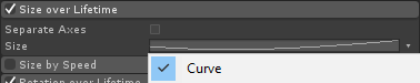 (Size over Lifetime menggunakan kurva yang terlihat seperti ini):